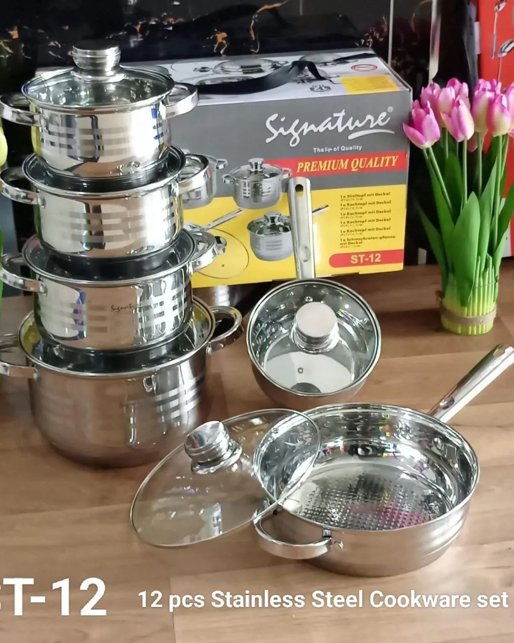 15 pcs Induction Base Stainless Steel Cookware set with Glass Lid