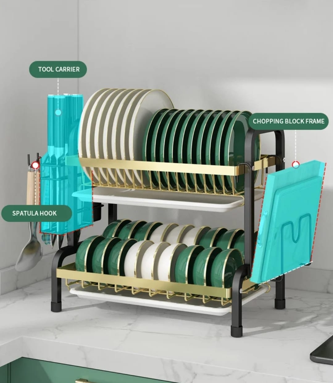 Home Kitchen Dishracks 2 tier Black gold Dishrack