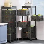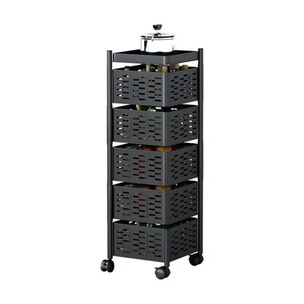 5Layer Square Vegetable Fruits Rotating Rack With Wheels