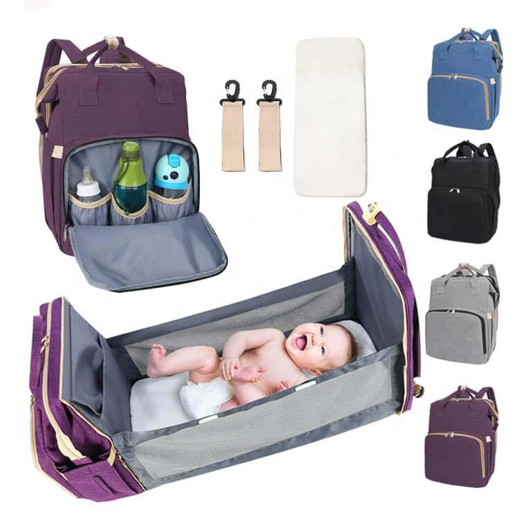 *Large Capacity Portable multi-functional diaper bag with changing station and a foldable crib – ZBP- 1158*