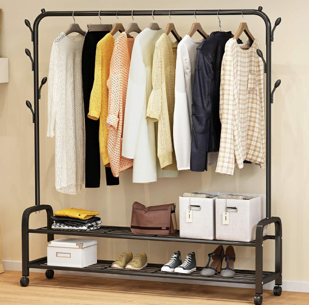 Upgraded Cloth Rack With Double Lower Storage Spaces & Has Lockable Wheels*