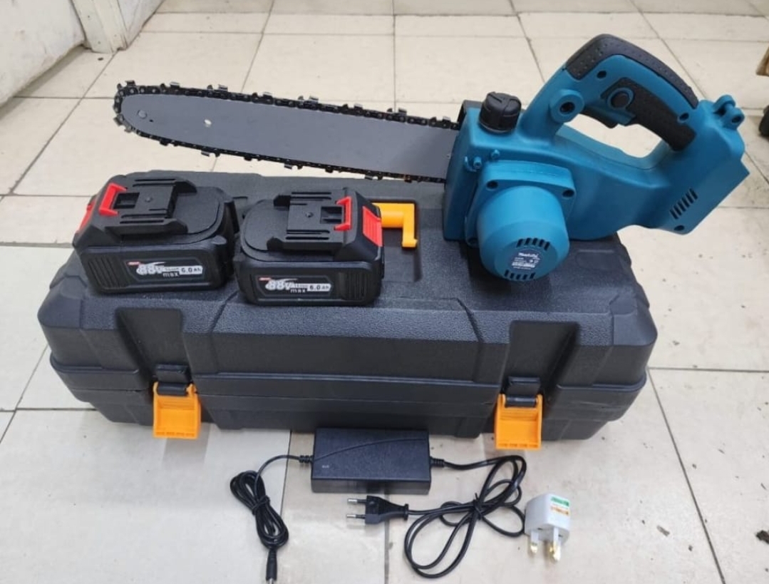 - – Includes: 1x chainsaw, 2x battery, 1x charger, 1x wrench, 1x side handle, 1x instruction manual, spare nuts and screws
