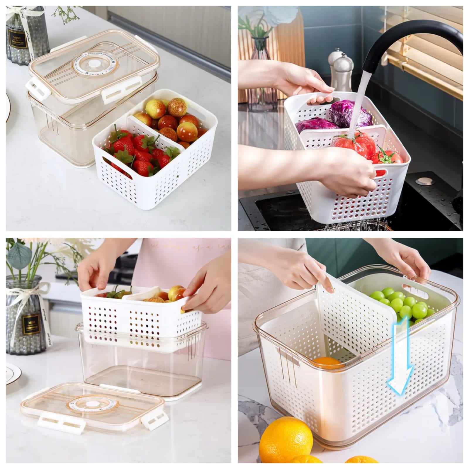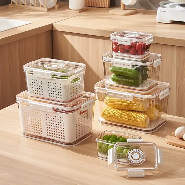 ✅️3 pcs Airtight Fridge Vegetable/Fruit/food storage Box with Drain Basket with compartment