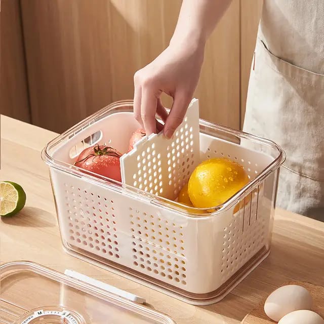 - 3 pcs Airtight Fridge Vegetable/Fruit/food storage Box with Drain Basket with compartment