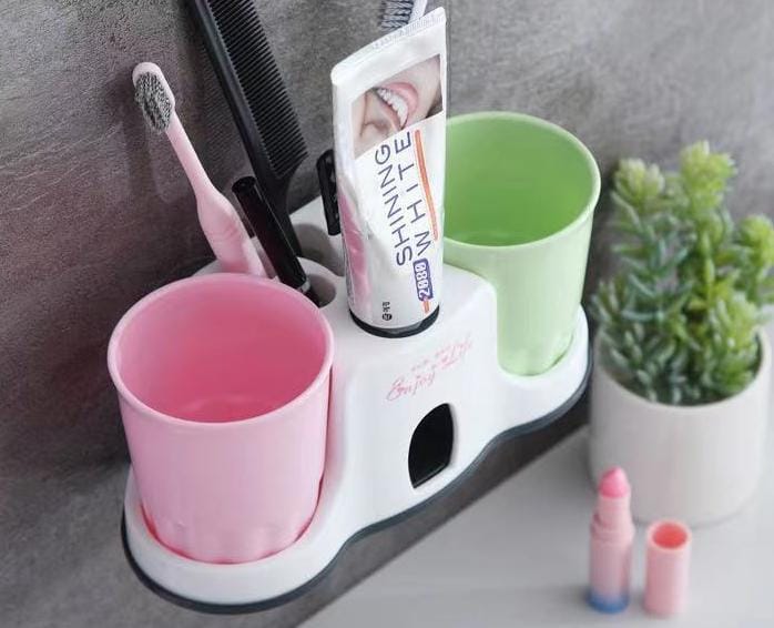 Enjoy life toothpaste dispenser with 2cups and toothbrushes holder.